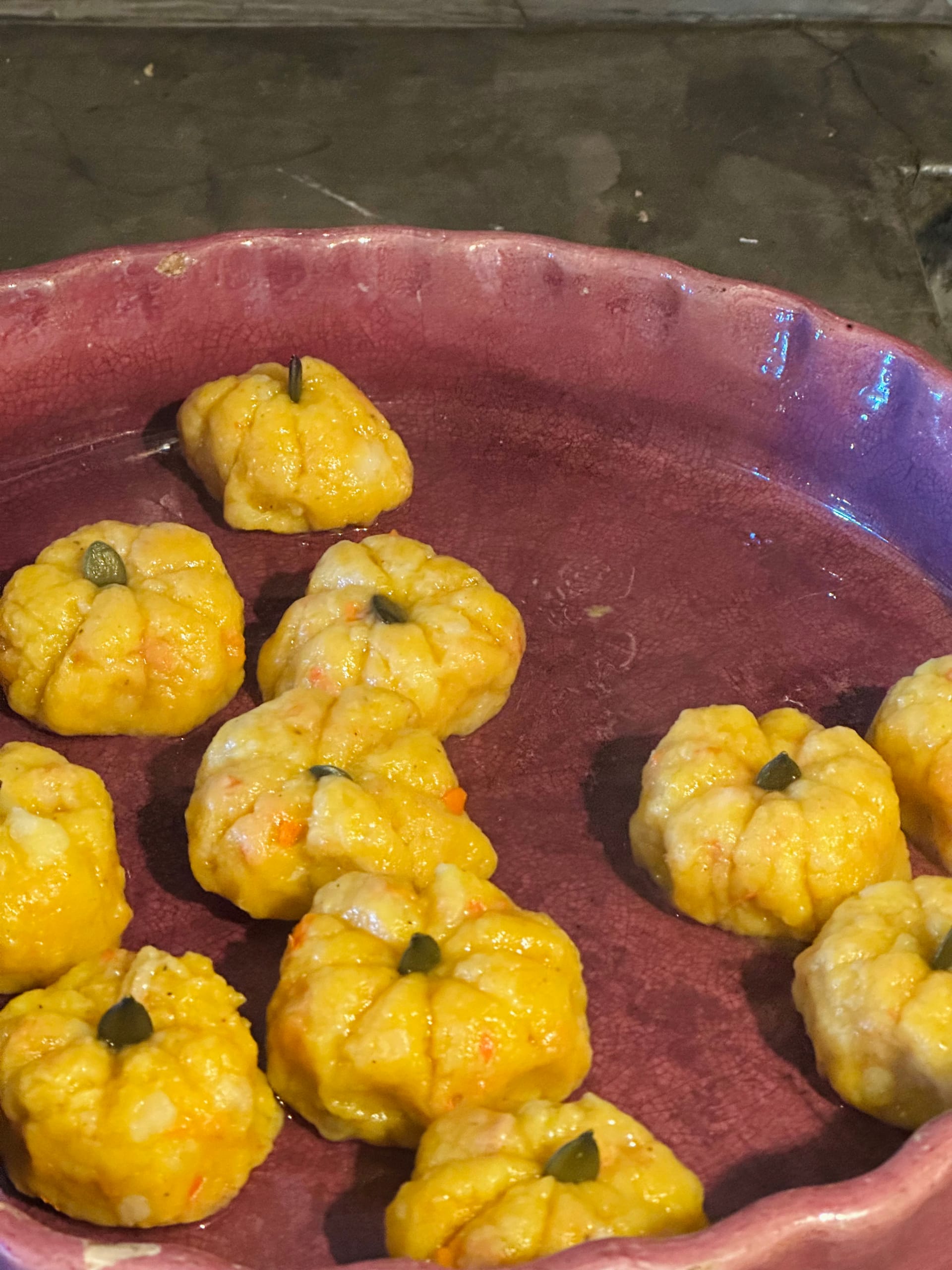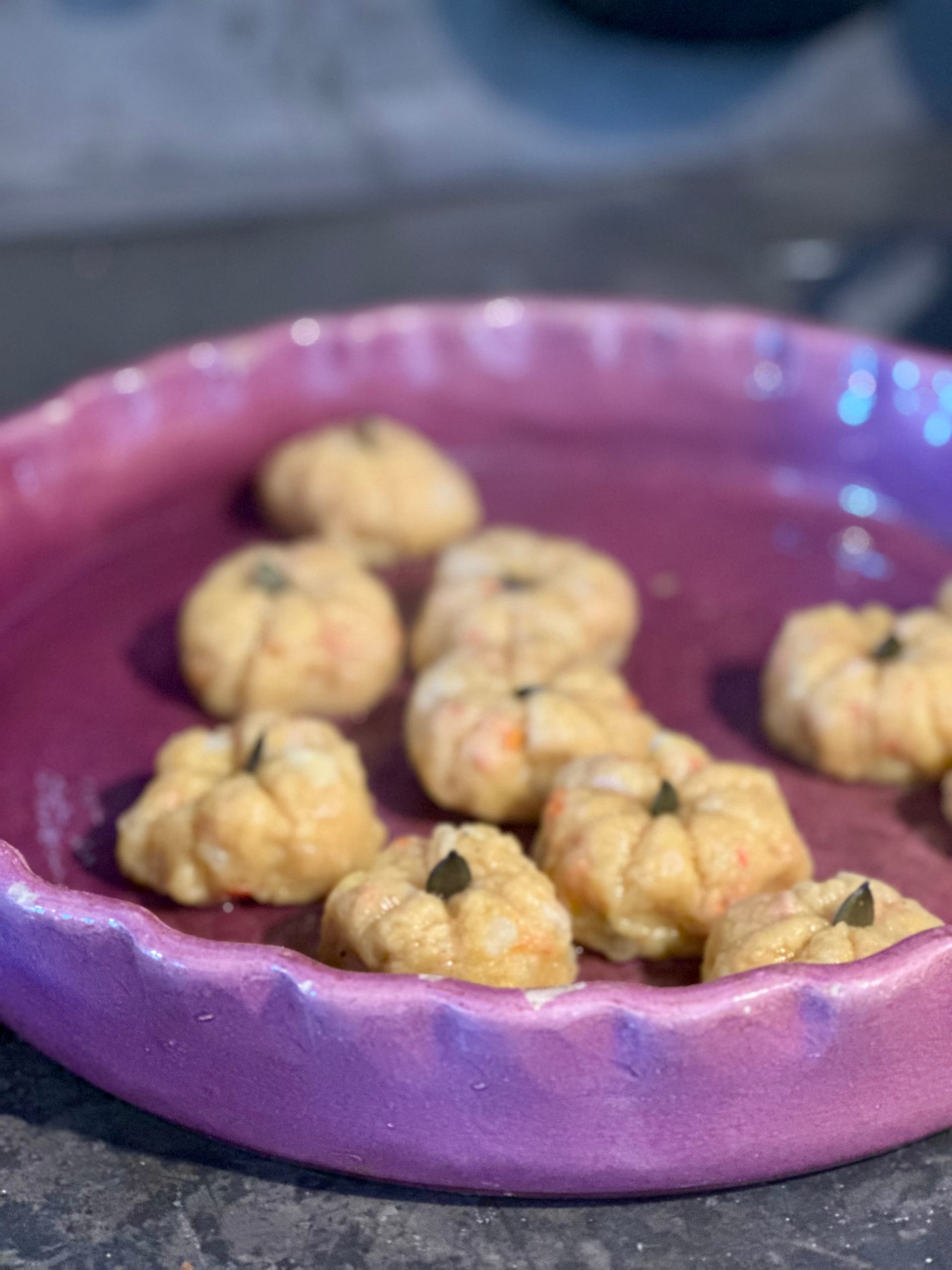 4. Ajouter une graine de courge sur le dessus de chaque gnocchi.